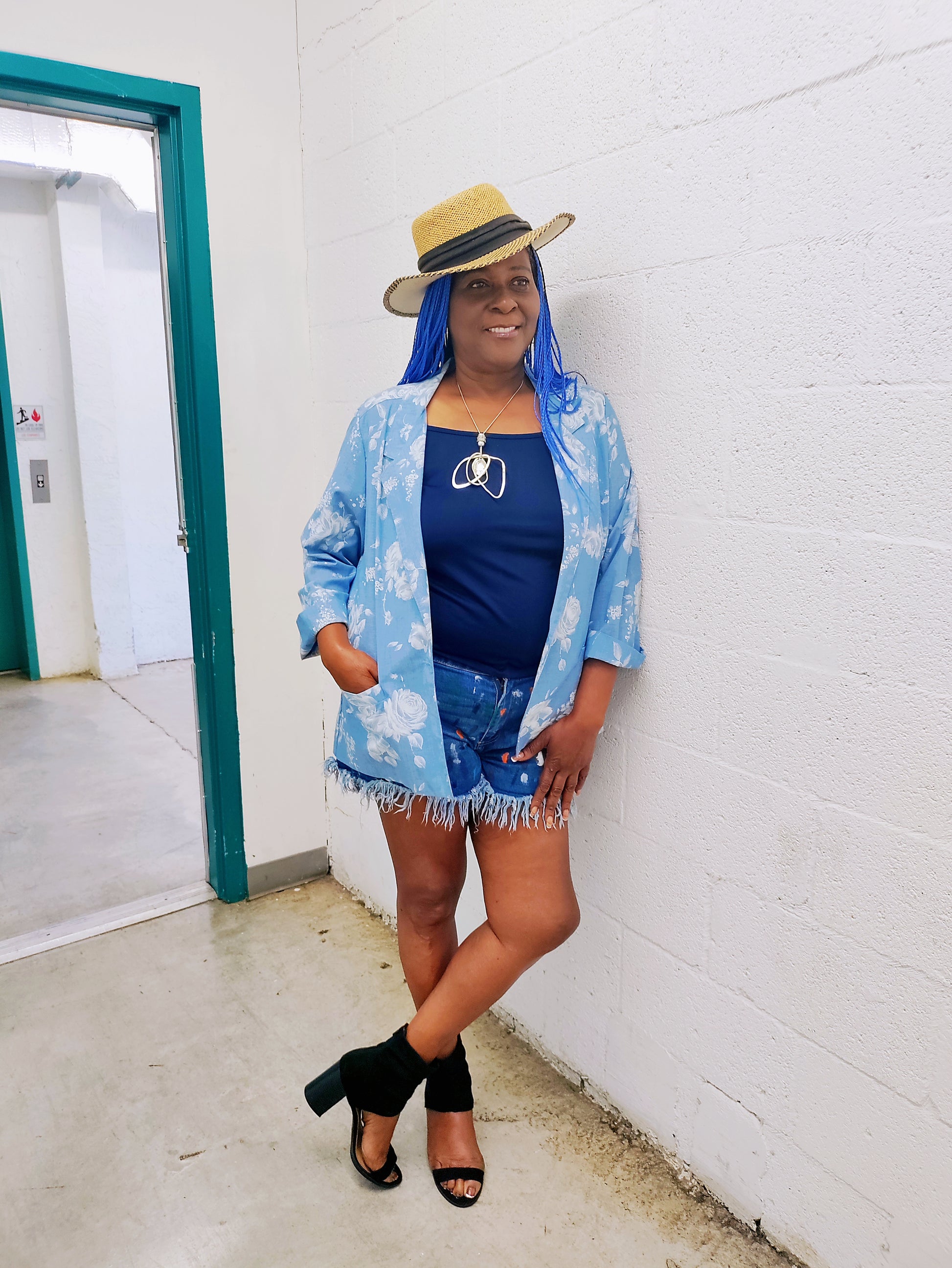 Alfred Dunner flower print with one button one pock on each side of the blazer. The blazer is in good to great condition.