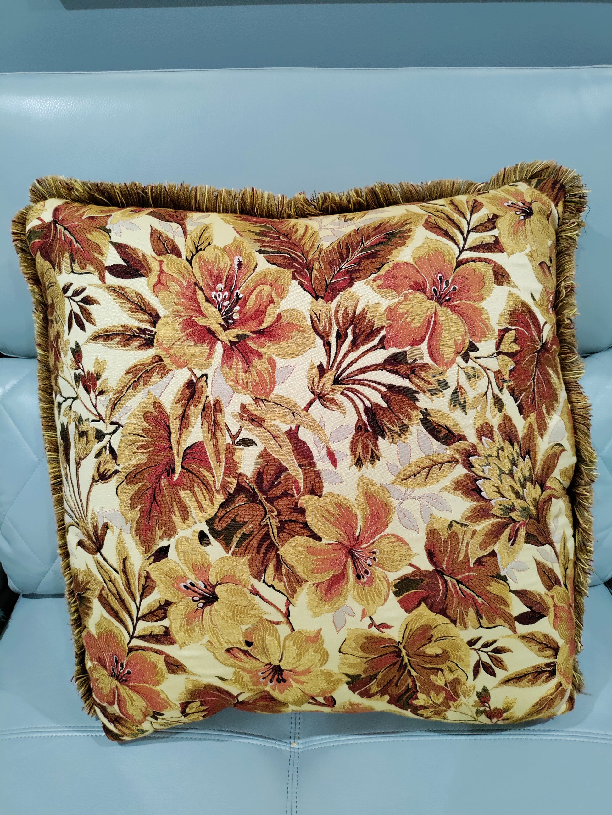 Two (2) Flower accent large pillows with flowers on one side and Tweed print on back side. Pillows are in very good condition