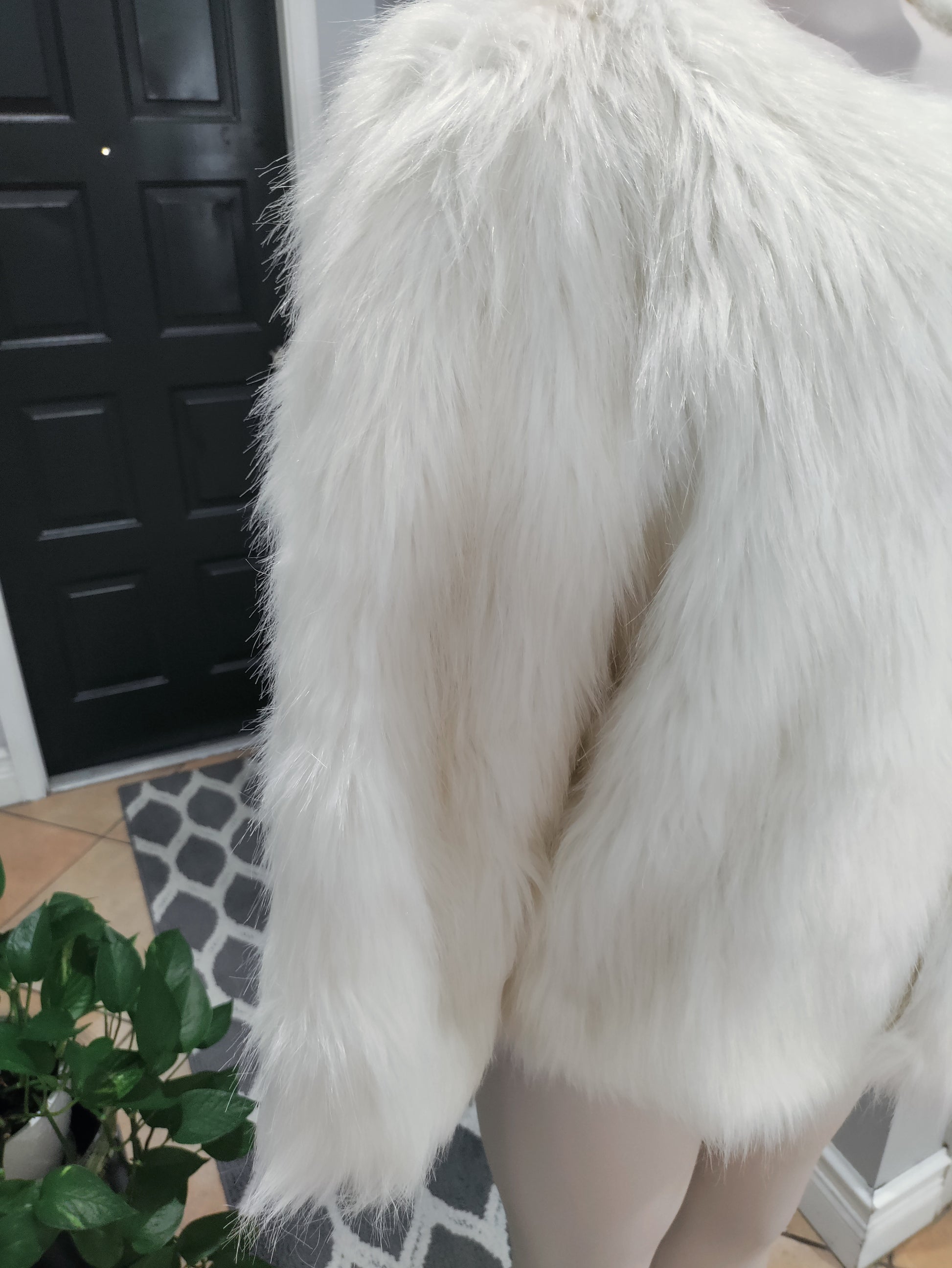 Jennifer Lopez long sleeves Faux fur pea coat with metal hooks. In excellent condition.