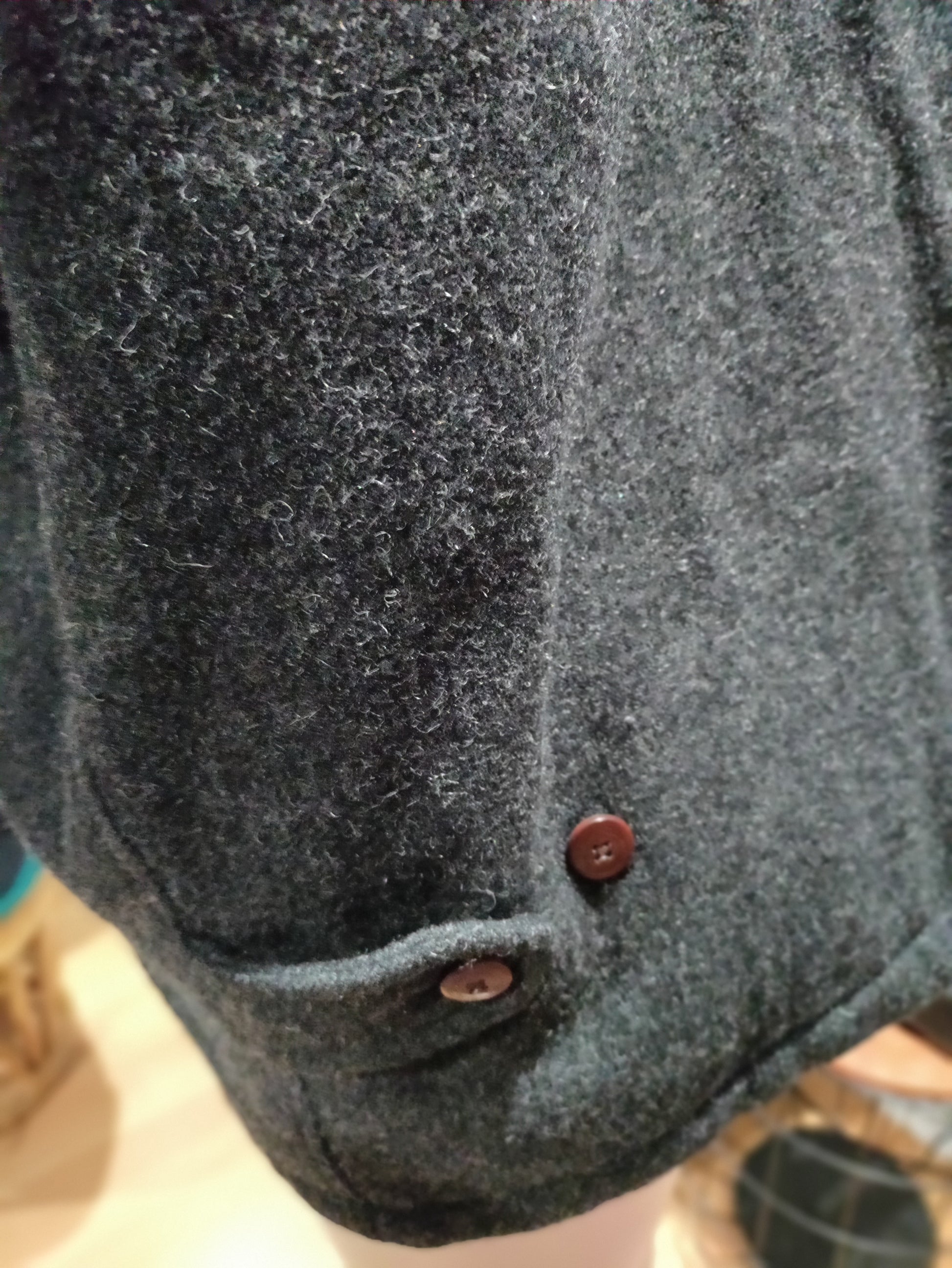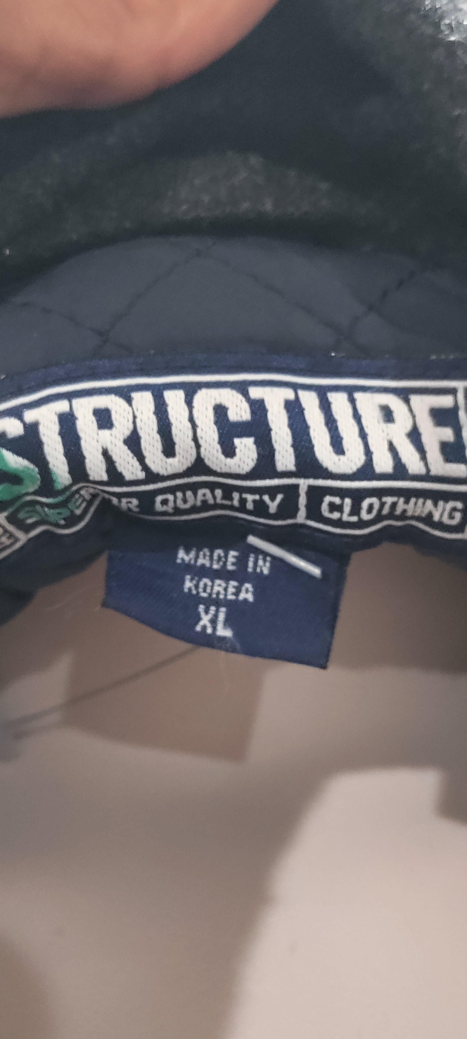Structure brand gray long sleeves heavy coat for men has pockets in front, one pocket with zipper closure on top left, has buttons on side hem to adjust for fit. Color is a dark gray, size XL. In excellent condition. Just have a green mark on the label.