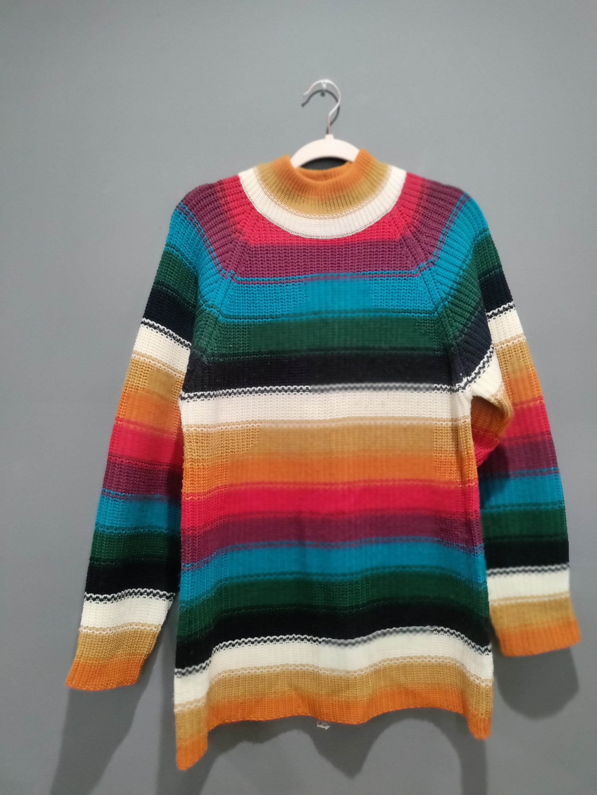 Oversized multicolored long sleeve sweater.