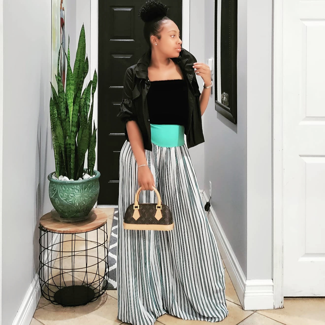 Parachute high-waisted wide leg stripe pants has zipper on back the leg of the pants are very wide very comfortable and excellent condition