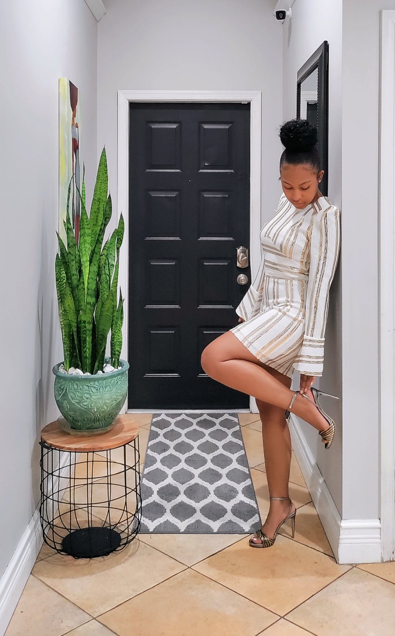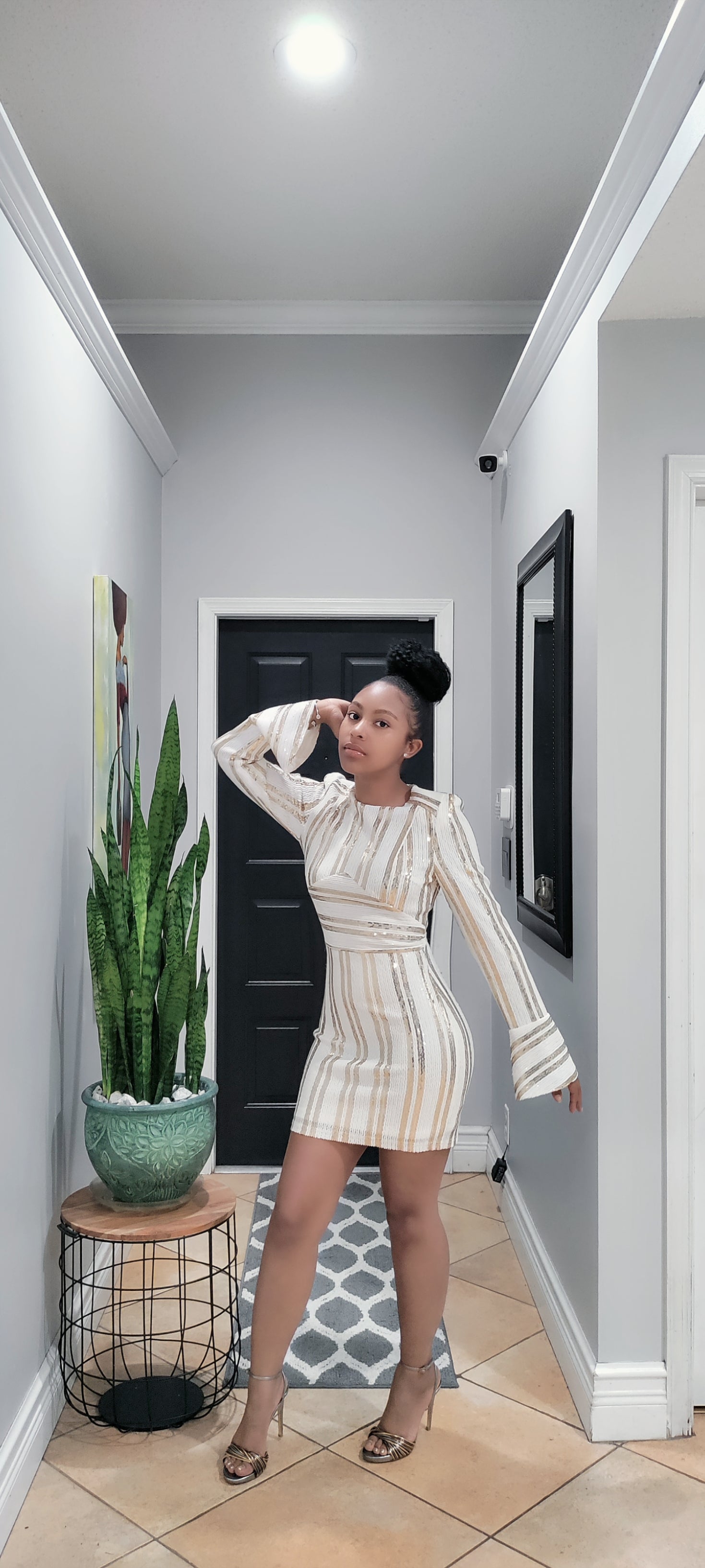 White, gold and silver sequins mini dress with oversized long sleeves in excellent condition.